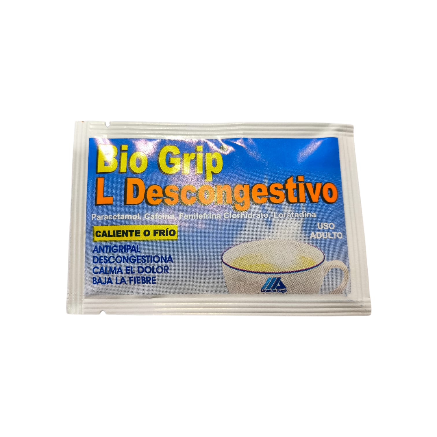 Bio Grip Descongestivo en sobre es un medicamento antigripal que ayuda a aliviar congestión nasal, dolor de cabeza, fiebre y malestar general asociados al resfrío y la gripe.