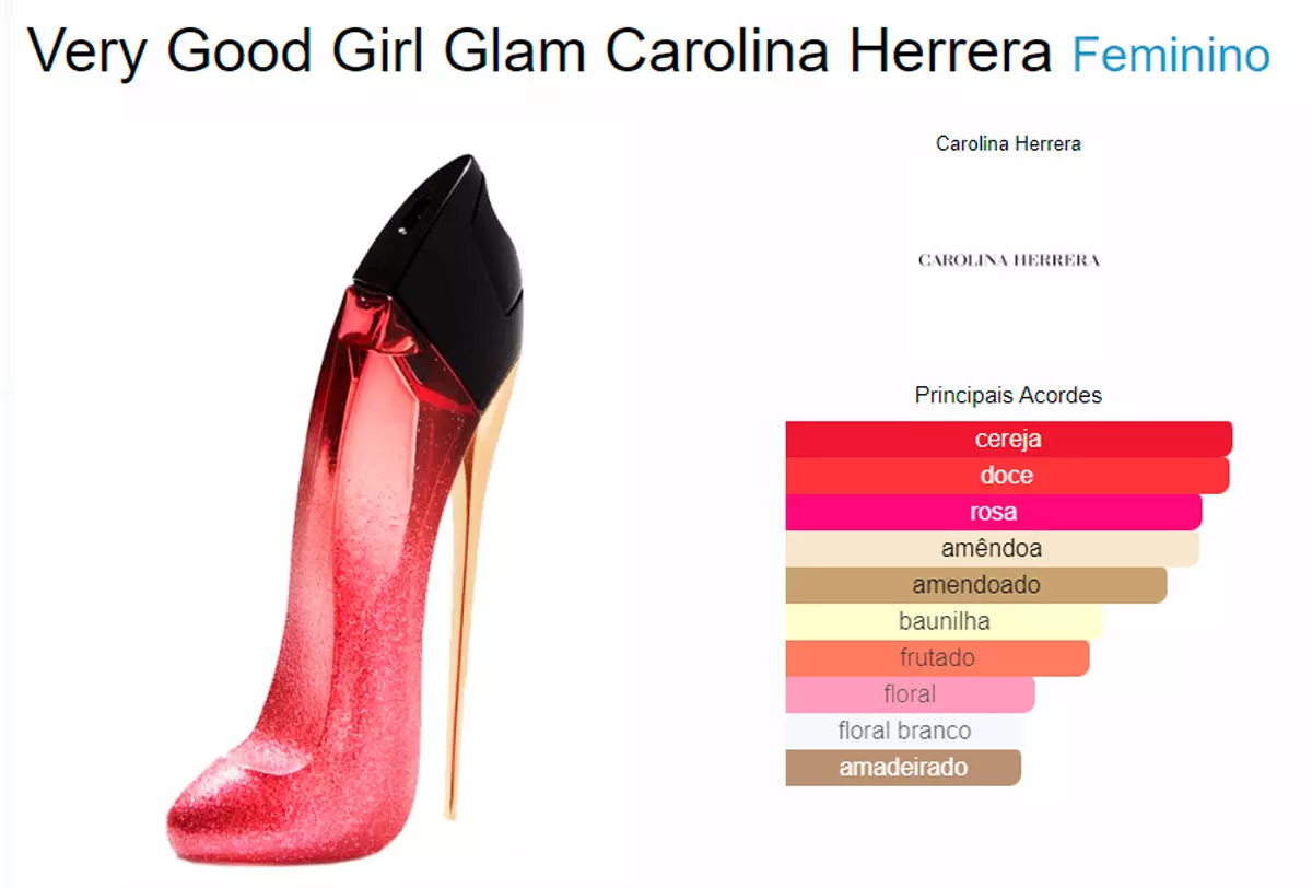 Good Girl Glam de Carolina Herrera es una fragancia femenina intensa y sofisticada, con un aroma dulce y brillante que celebra el glamour y la seguridad de la mujer moderna.
