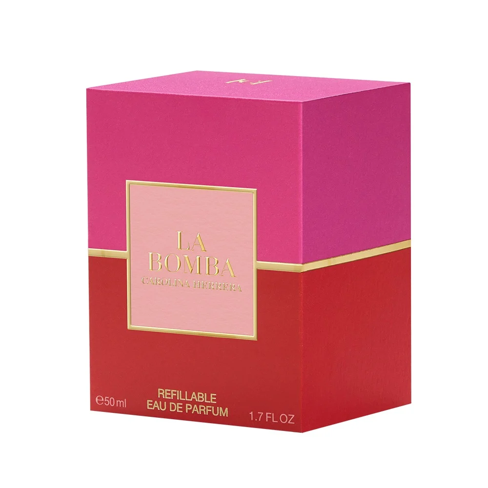 Carolina Herrera La Bomba Femme Eau de Parfum 50 ml: una fragancia floral, frutal y ámbar que irradia alegría y magnetismo. Ideal para mujeres modernas y seguras de sí mismas.