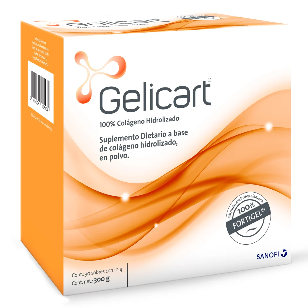 Gelicart 30 sobres es un suplemento alimenticio formulado con colágeno hidrolizado de alta pureza, diseñado para apoyar la salud de las articulaciones, huesos y tejidos conectivos. El colágeno es una proteína esencial que contribuye a la elasticidad y firmeza de la piel, así como a la resistencia de tendones y ligamentos.