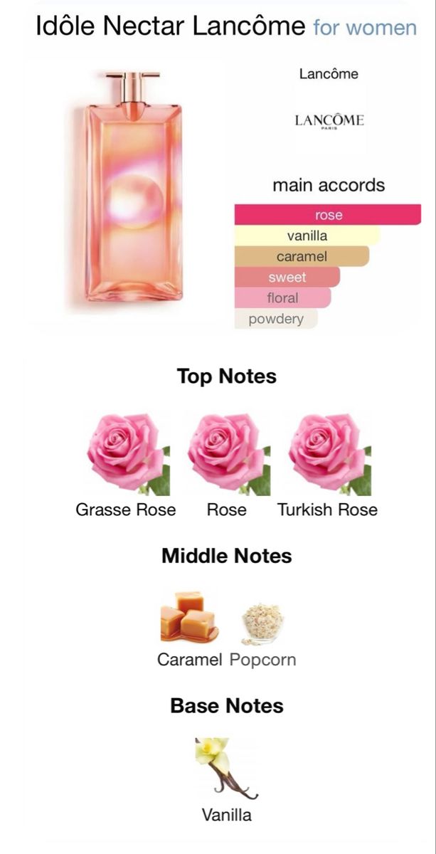 Lancôme Idôle Nectar Eau de Parfum es una fragancia femenina luminosa y moderna, con un aroma dulce y radiante que celebra la confianza y la feminidad.
