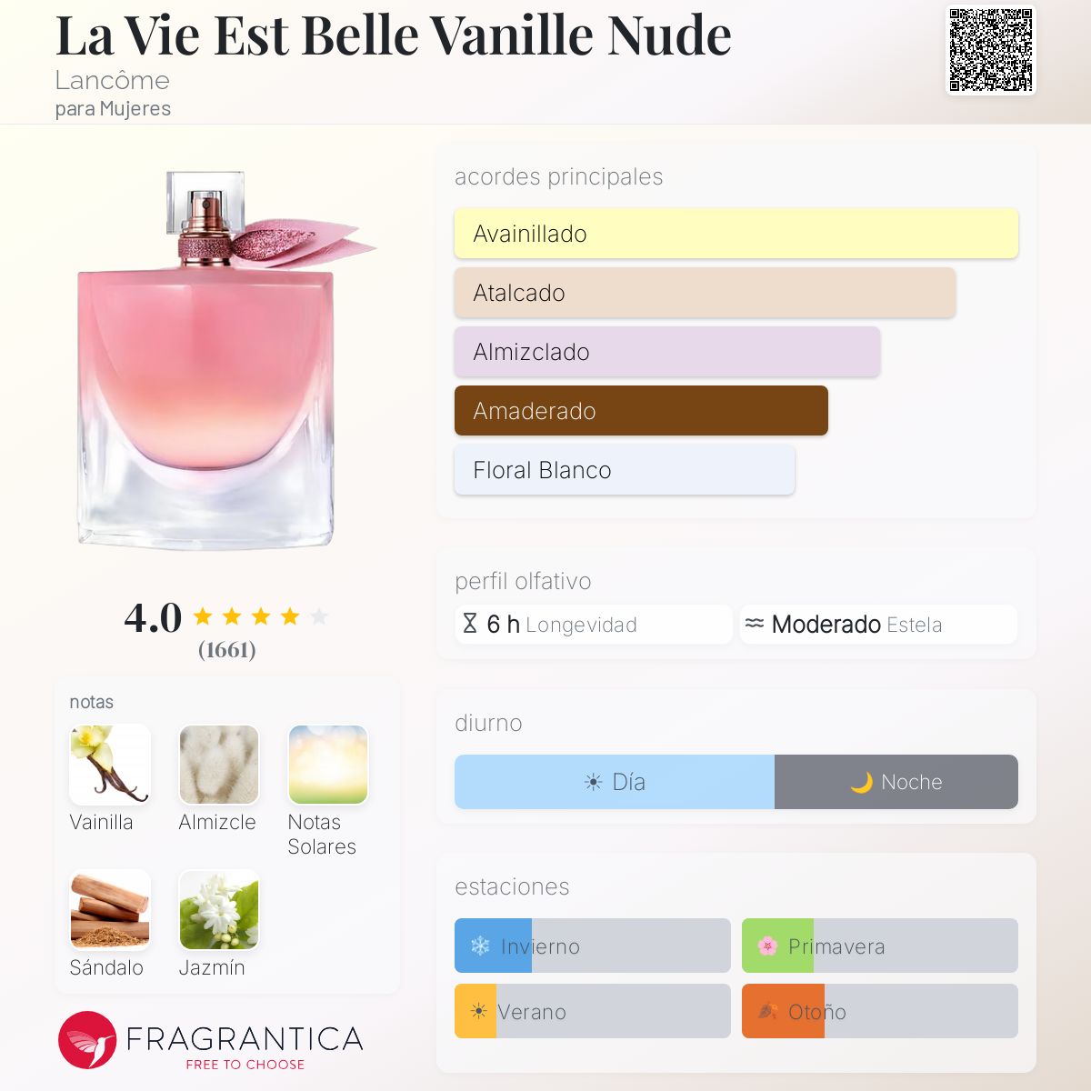 - Nota protagonista: vainilla cremosa, que envuelve la piel en un halo cálido y adictivo.