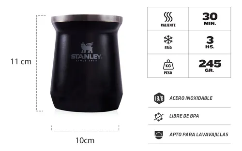 El Mate Stanley 236 ml black es ideal para disfrutar el mate todos los días, ya sea en casa, en la oficina o al aire libre. Fabricado en acero inoxidable de alta calidad, es resistente a golpes y caídas, y mantiene la temperatura por más tiempo que los mates tradicionales.