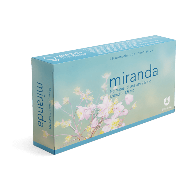 Miranda 28 es un anticonceptivo oral hormonal combinado de baja dosis, efectivo para la prevención del embarazo y la regulación del ciclo menstrual. Presenta un esquema de 28 días (21 comprimidos hormonales + 7 placebos) que permite una toma diaria continua, sin interrupciones.