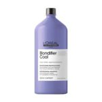 Shampoo Matizador Blondifier L’Oréal Professionnel 1500 ml es un shampoo profesional matizador violeta diseñado para neutralizar reflejos amarillos no deseados en cabellos rubios, decolorados o con mechas, mientras nutre, suaviza y realza el brillo del rubio sin resecar.